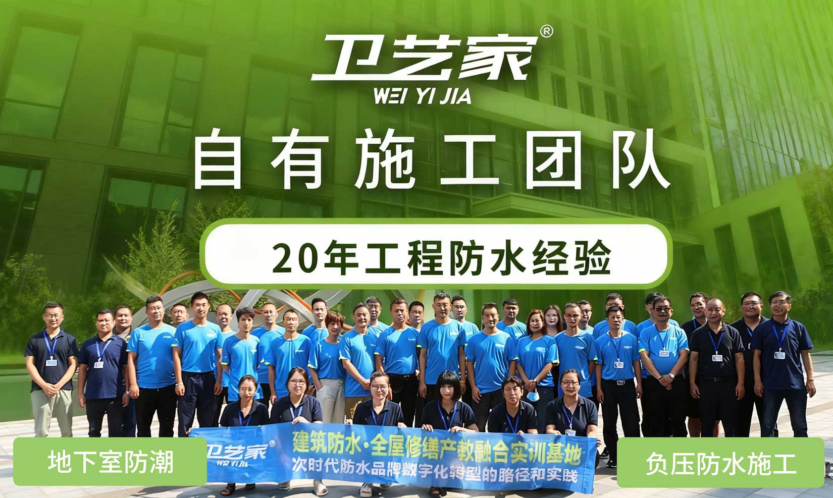 卫艺家防水,创始人专业防水服务20年,提供唐山负压防水施工等专业防水工程施工,自有施工团队,20年工程防水经验。卫艺家防水凭借创始人 20 年的专业积淀和国家高新技术企业的技术实力,以负压防水技术为核心,为各类建筑渗漏难题提供系统性解决方案。作为拥有二级防水施工资质、30 余项国家专利的正规企业,卫艺家已累计完成超 8000 个防水项目,从别墅地下室负压防水工程、大型建筑屋面防水到老旧小区平改坡防水工程,用 "背水面主动防渗" 的技术突破,重新定义了防水工程的标准。